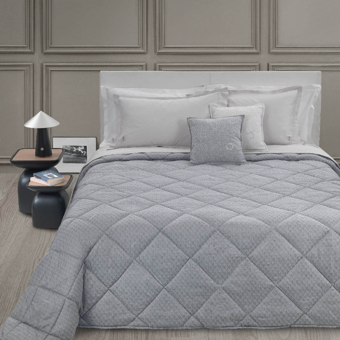 Copriletto Trapuntato Trussardi Straw Geometrico in Raso Jacquard
