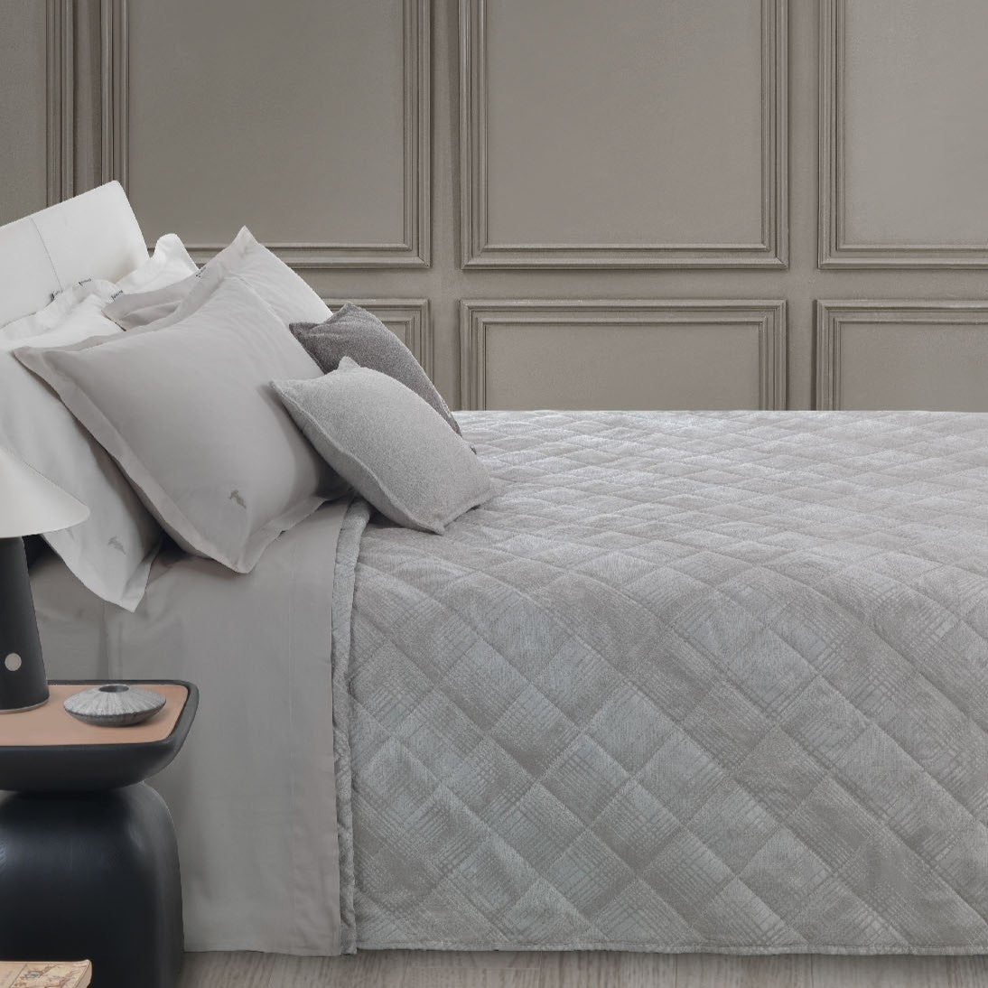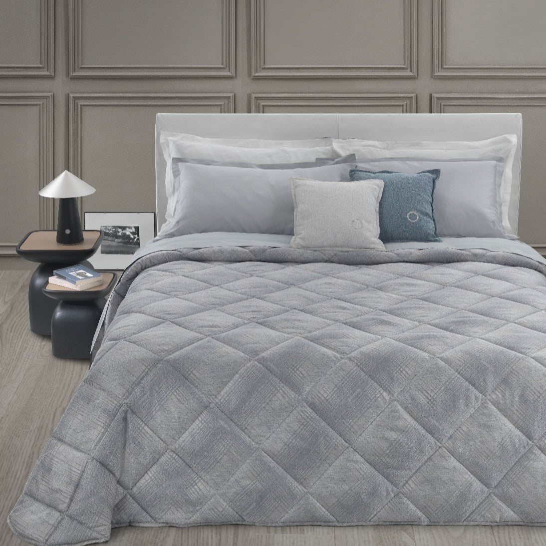 Copriletto Trapuntato Trussardi Tartan Geometrico in Raso Jacquard