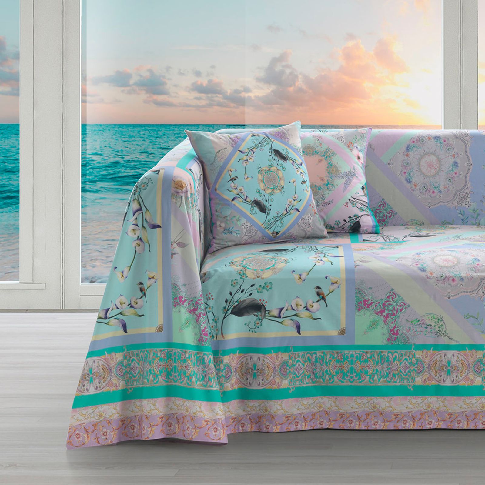 Telo arredo Copridivano Grandecor Mirabello Valencia Moderno in Percalle Luisiana